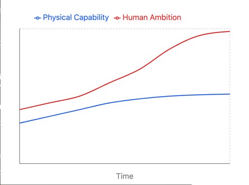 But we truly believed — and still do — that we're nearing a plateau on the graph of human physical strength versus ambition.